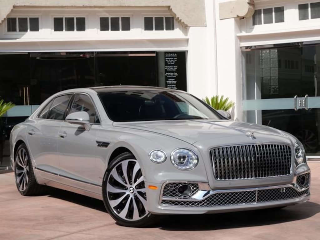 Bentley Beverly Hills is proud to present this 2024 Bentley Flying Spur Azure V8 in Cambrian Gray and Beluga.
