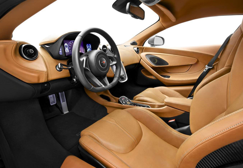 Inspired by the McLaren P1™ supercar, slimline light blade LED tail lights accentuate an expanse of open mesh for enhanced engine cooling and a technical, futuristic appearance. The mid-mounted engine is visible beneath the lightweight mesh, while an aggressive ‘floating’ diffuser enhances downforce for supremely confident handling.